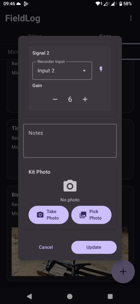- Added ability to pick a photo instead of just take a new one for gear (mics, recorders, kits)