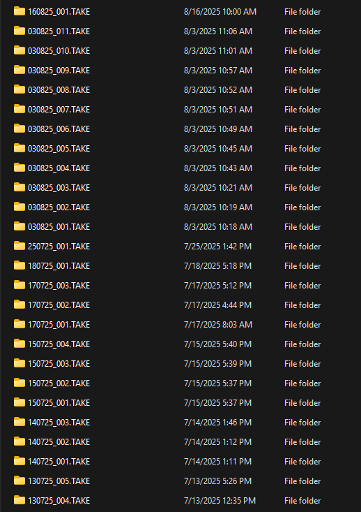 Of course, the underlying metadata in FieldLog still captures nuance: environment, subject, performance notes, number of attempts, mic rig, and so on. The word take is simply the surface label—the friendly handle for users. Behind the scenes, the metadata ensures archivists, designers, and hobbyists alike can tag, search, and retrieve their work however they want.